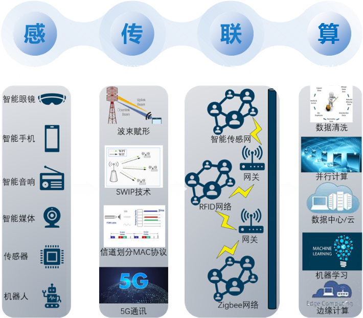 The basic theory of the ubiquitous perception system, including intelligent perception, intelligent wireless communication, heterogeneous interconnection, and massive polymorphic IoT perception data processing. Combined with the fifth-generation communication technology and artificial intelligence technology, the network is used to endow all things with perception, and finally a large amount of data is generated in the cloud, which is applied intelligently.