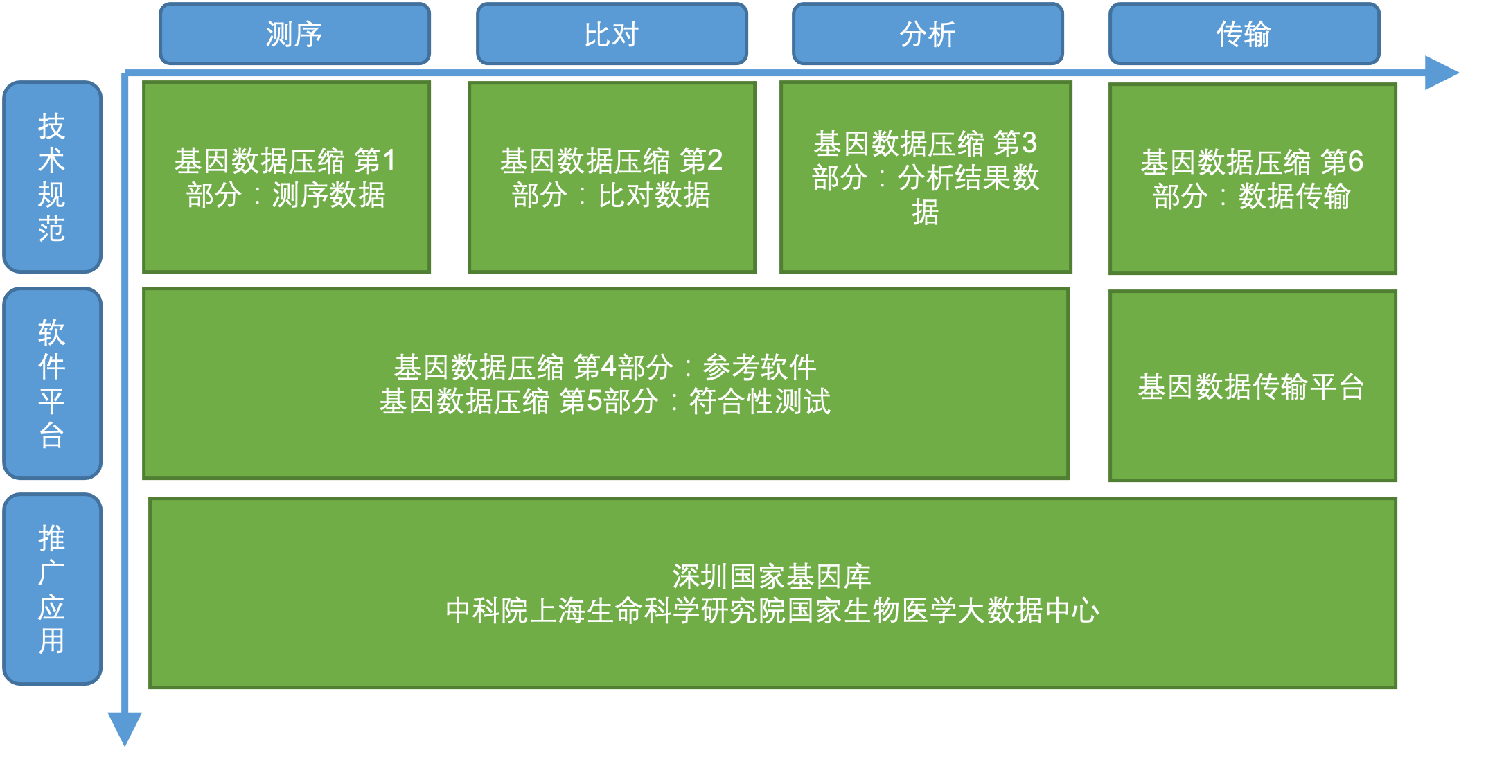 In the gene big data compression storage and standardization project, the laboratory led the establishment of the genome sequencing data compression standard technology system (AVS-G), which is national independent. The lab also established the standard test database of gene sequencing data compression, and developed the gene sequencing data compression reference software.