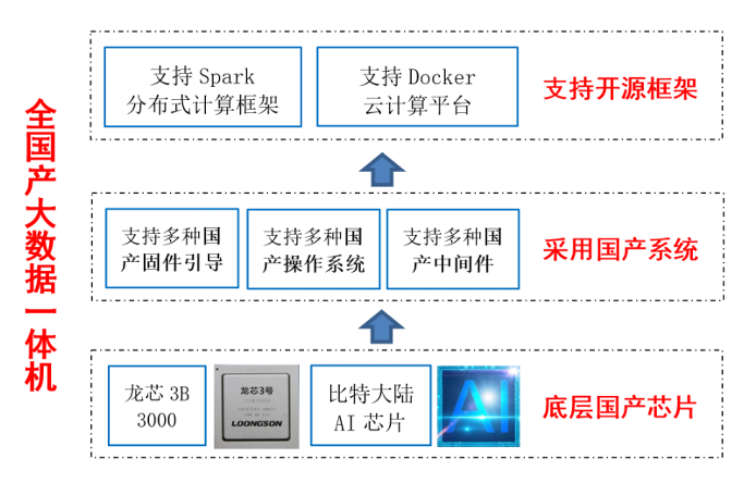 The totally-domestic big data integrated machine is developed based on the totally-domestic popularized high-performance computer SD-70. The underlying layer uses Loongson + Bitmain AI chips. The machine uses totally-domestic systems and supporting software. It wonthe second prize of the Ministry of Education's Science and Technology Progress Award.