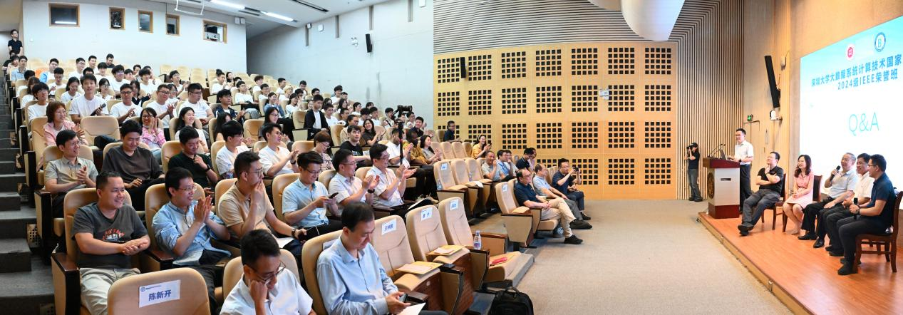 风清气爽,秋意渐浓。2024年9月4日,深圳大学大数据系统计算技术国家工程实验室开展了2024级计算机科学与技术(IEEE荣誉班)主题班会。本次主题班会不仅吸引了校内师生的目光,更有幸邀请到荣誉班主任毛军发院士、腾讯副总裁王巨宏、华为云全球生态部总裁康宁以及华大集团教育中心副院长王林鹏等众多行业精英与学术权威到场,同时邀请了学校教务部袁磊主任,团委柯晓书记,招生办朱玲燕主任,计算机与软件学院杨国洪书记、廖江海副书记等参加,与实验室全体教职工与2024级IEEE荣誉班全体同学共同参与。