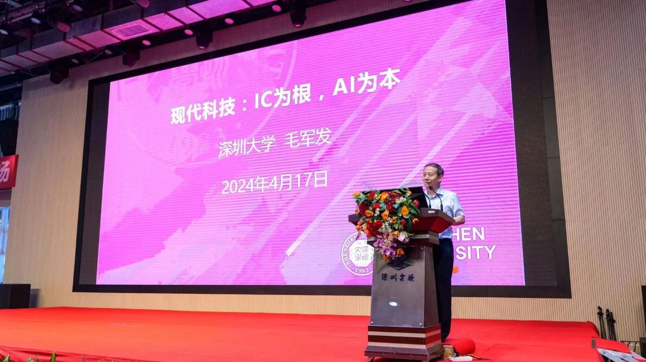 随后,揭牌仪式正式开始。深圳实验学校校长邓旭在讲话中提到,图灵实验室的成立是两校深化合作的重要举措,也是对未来科技教育发展的有益探索。他希望通过这个平台,能够激发学生的创新精神和科研潜能,培养更多优秀的科技创新人才。两校领导共同为图灵实验室揭牌,并合影留念。揭牌仪式后,中国科学院院士、深圳大学校长毛军发为深圳实验学校师生们带来《现代科技:IC 为根,AI 为本》主题讲座。