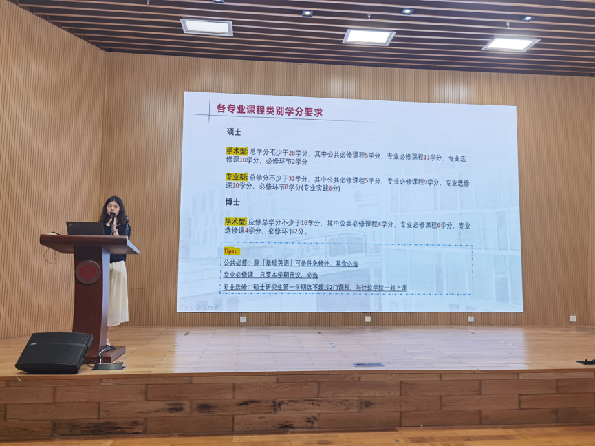 实验室研究生秘书刘碧薇老师为新生开展了研究生教务专场,详细介绍了研究生教务的相关事宜。