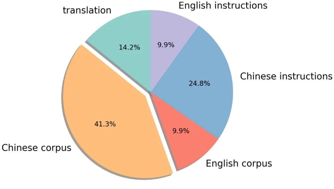 其中无监督语料包括中文百科、科学文献、社区问答、新闻等通用语料,提供中文世界知识;英文语料包含 SlimPajama、RefinedWeb 等数据集,用于平衡训练数据分布,避免模型遗忘已有的知识;以及中英文平行语料,用于对齐中英文模型的表示,将英文模型学到的知识快速迁移到中文上。
