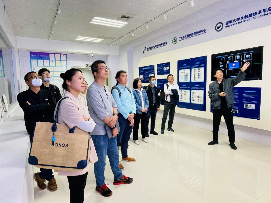 李坚强主任对荣耀公司罗艺虹一行的到来表示热烈欢迎,并带领参观了国家工程实验室一楼展厅。王利主任详细介绍了大数据系统计算技术国家工程实验室的科研水平、校企合作及成果应用等情况。