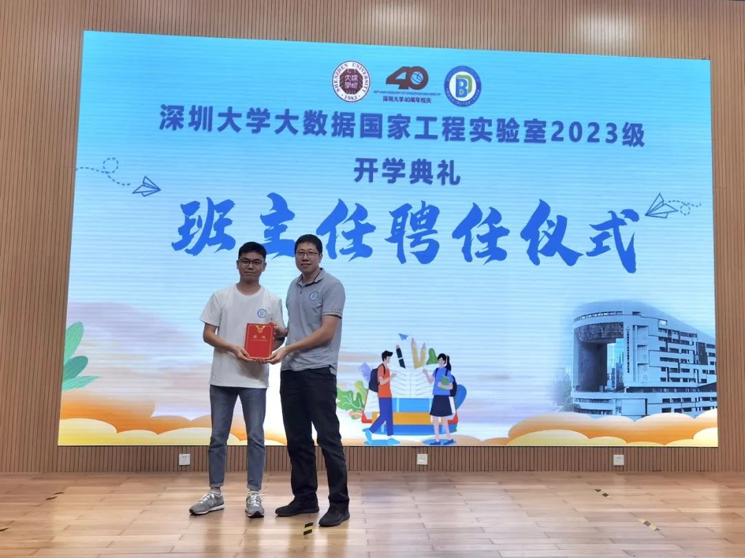 在班主任聘用仪式上,陈新开院士和国家工程实验室副主任朱泽轩教授分别为张军和卓炜两位老师颁发聘书,他们将在接下来的学年中担任新生们的班主任。