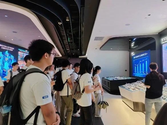 学生们在专业讲解员的引导下,深入参观了腾讯的展览馆,不仅了解了腾讯丰富的业务线,还了解到公司从创立至今的发展历程、取得的创新成就、独特的企业文化,以及腾讯各类产品和项目。